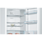 El Bosch KGN366WCF es un frigorífico combi de libre instalación con tecnología No Frost, diseñado para conservar alimentos de forma eficiente y sin necesidad de descongelación manual. Con una capacidad total de 326 litros, está pensado para hogares de tamaño medio que buscan un electrodoméstico funcional, duradero y con un diseño limpio en color blanco.