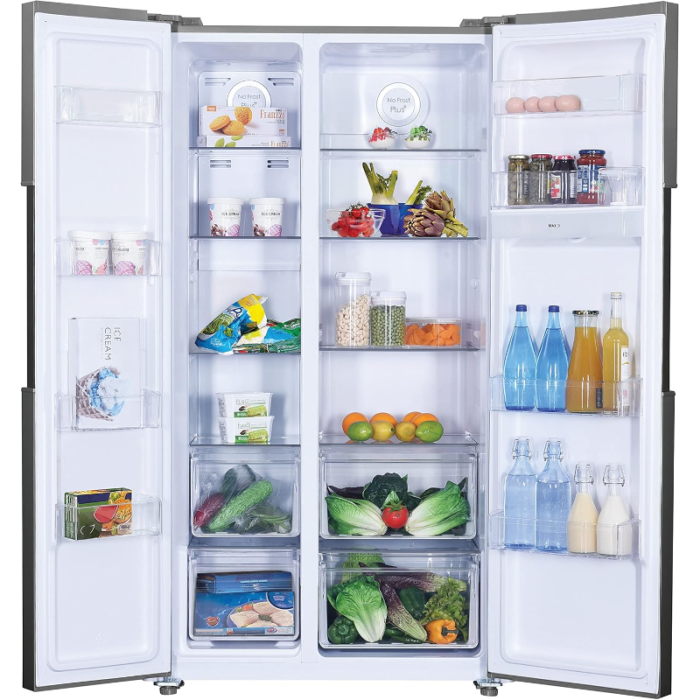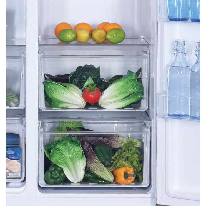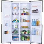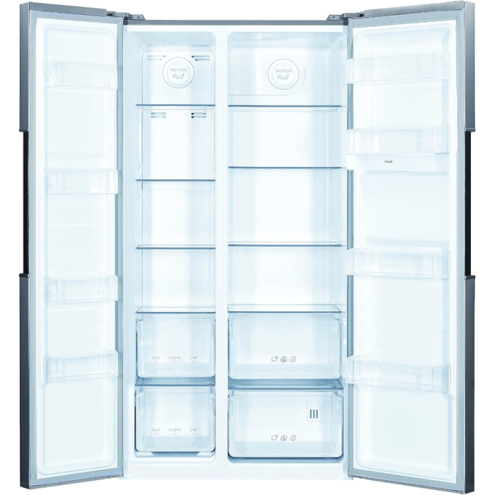 Este frigorífico combina tecnología moderna con un diseño funcional, permitiendo conservar los alimentos frescos por más tiempo y reducir el consumo energético. Su formato side by side facilita la distribución de los compartimentos, ofreciendo acceso directo tanto al refrigerador como al congelador.