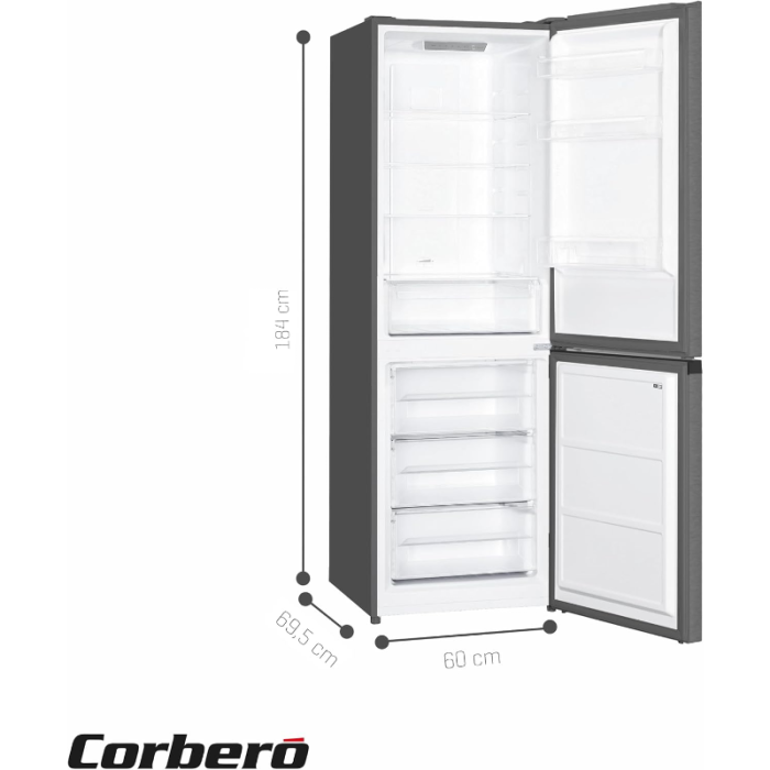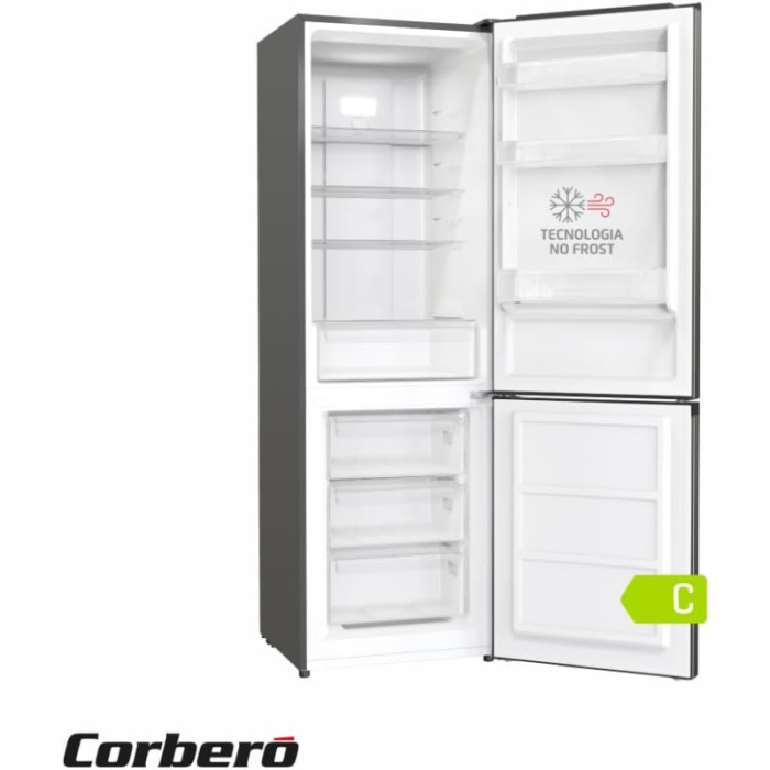 El Corberó Frigorífico Combi No Frost es un electrodoméstico de refrigeración diseñado para conservar alimentos frescos y congelados de forma eficiente. Es adecuado para hogares de tamaño medio que buscan una solución práctica, funcional y sin mantenimiento de descongelación manual. Su diseño combi integra frigorífico y congelador en un solo aparato, optimizando el espacio en la cocina.