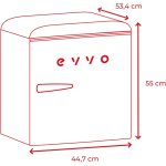 La EVVO F20 Mini Nevera Retro 45L es un frigorífico compacto de estilo vintage, diseñado para ofrecer funcionalidad en espacios reducidos con un diseño estético inspirado en los años 50. Es ideal para personas que buscan una solución de refrigeración adicional en oficinas, dormitorios, apartamentos pequeños, segundas residencias o como complemento decorativo en espacios con estilo retro.