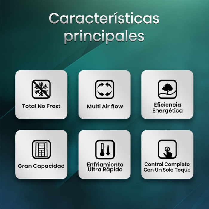 – Tecnología Total No Frost: evita la formación de escarcha en el congelador y la nevera