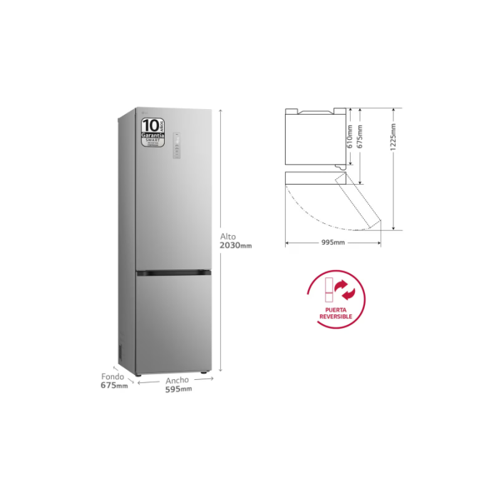 El LG GBV5250CPY es un frigorífico combi de libre instalación con una capacidad total de 387 litros, diseñado para hogares que buscan eficiencia energética, conservación óptima de alimentos y tecnología avanzada sin complicaciones. Es adecuado para familias medianas o grandes que necesitan espacio de almacenamiento organizado y un funcionamiento fiable a largo plazo.