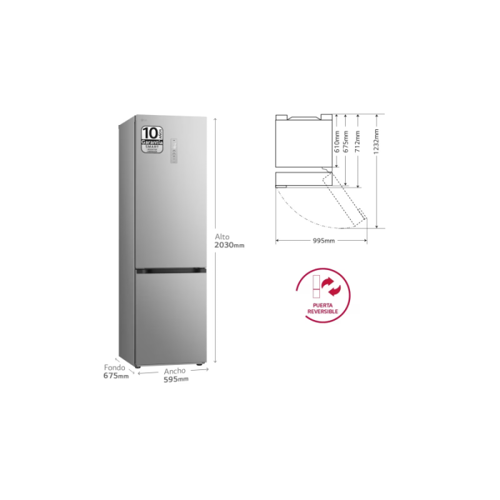 El LG GBV5250EPY es un frigorífico combi de libre instalación con una capacidad total de 419 litros, diseñado para hogares que requieren un almacenamiento amplio, eficiente y organizado de alimentos. Es adecuado para familias medianas o grandes que buscan un electrodoméstico duradero, con tecnología avanzada y bajo consumo energético.