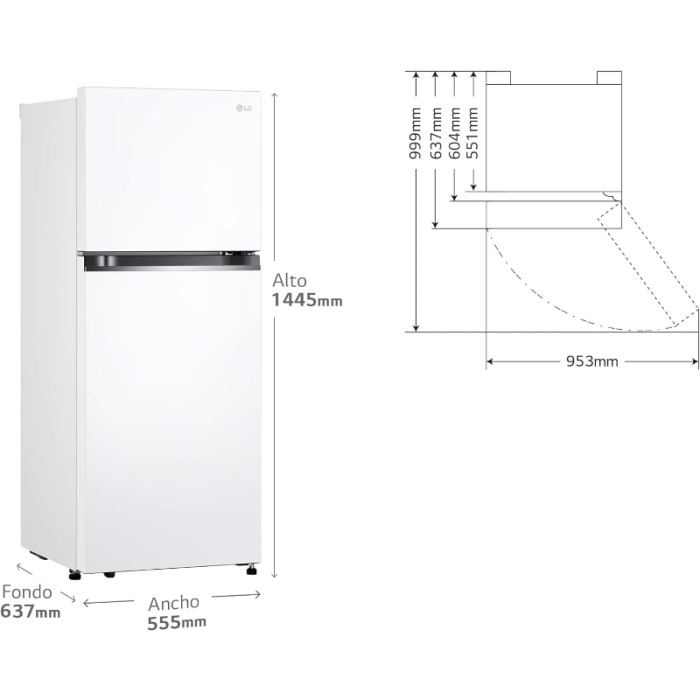 Resumen en lenguaje sencillo: este refrigerador LG de dos puertas enfría rápido, no hace escarcha, ahorra energía, es silencioso y tiene espacio suficiente para toda la comida de una familia. Además, mantiene los alimentos frescos por más tiempo y no necesita descongelarse.