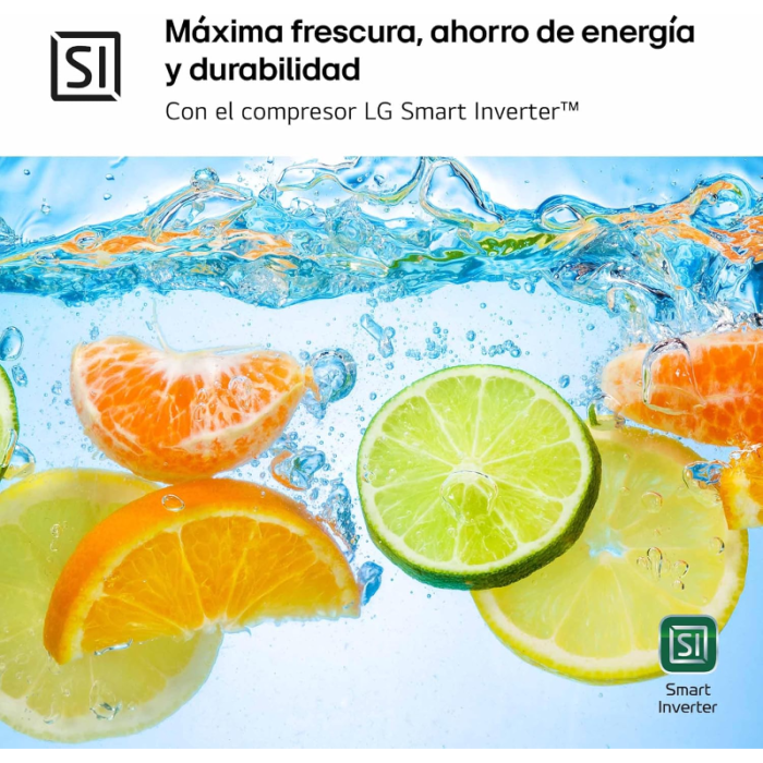 – Compresor Smart Inverter que ajusta la velocidad según la demanda, mejorando la eficiencia energética y reduciendo el ruido.