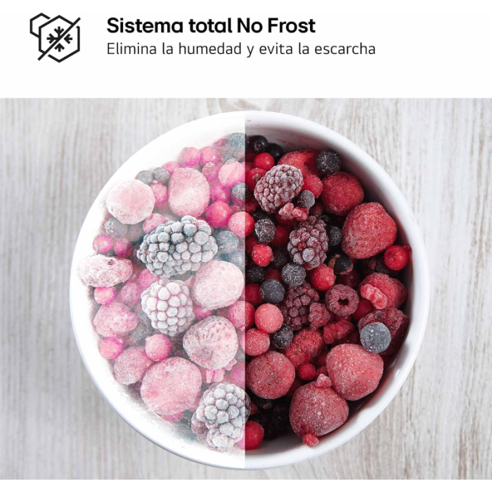 – Tecnología Total No Frost que evita la formación de escarcha, eliminando la necesidad de descongelar manualmente.