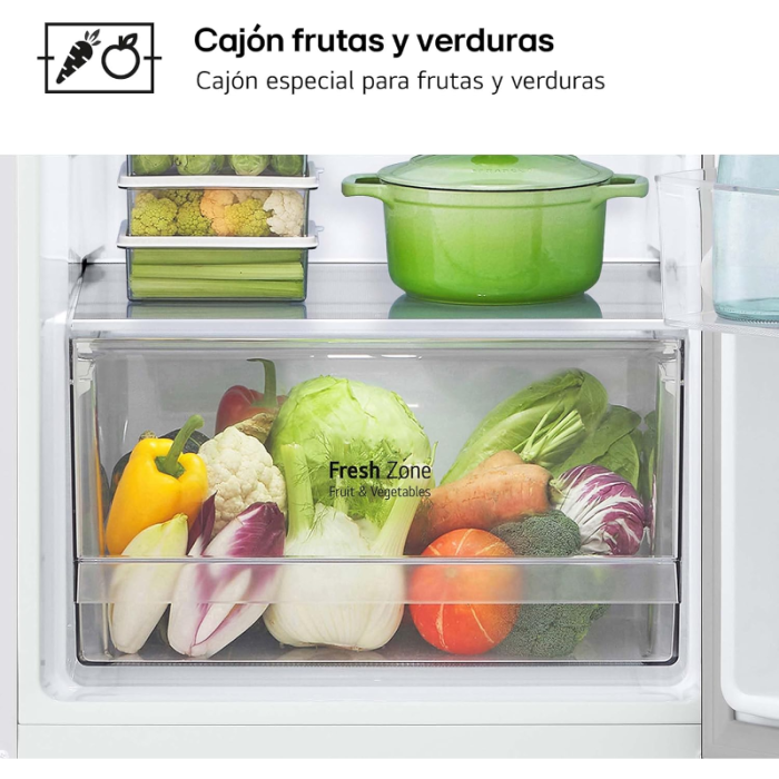 – Cajón Fresh Zone para frutas y verduras, que mantiene la humedad adecuada para conservar su frescura.