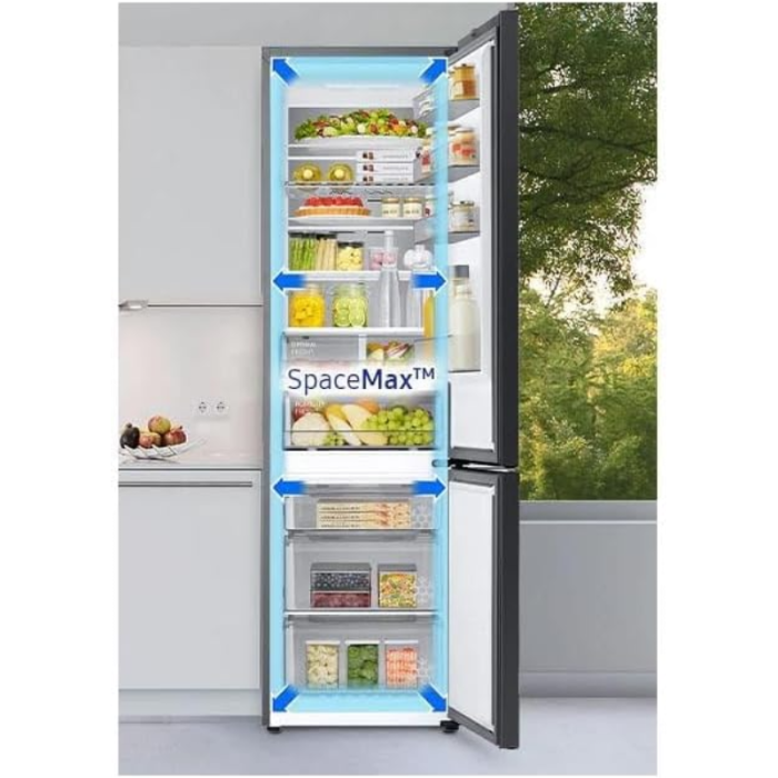 El Samsung RB38C7B6AS9/EF es un frigorífico combi de libre instalación con tecnología No Frost, diseñado para conservar alimentos de forma eficiente y sin necesidad de descongelación manual. Con una capacidad total de 387 litros, está pensado para hogares de tamaño medio a grande que buscan un electrodoméstico moderno, funcional y con bajo consumo energético.