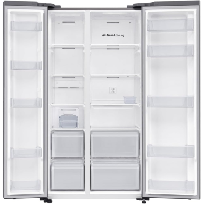 El Samsung RS62DG5003S9/EF es un frigorífico americano de gran capacidad con sistema No Frost, acabado en acero inoxidable, diseñado para hogares que requieren amplio espacio de almacenamiento y eficiencia en la conservación de alimentos. Es ideal para familias numerosas o personas que desean organizar sus alimentos de forma cómoda y duradera, sin preocuparse por la formación de escarcha.