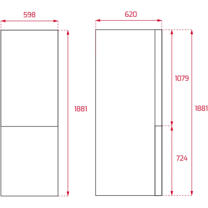 – Dimensiones: 188 cm de alto x 59,5 cm de ancho x 63,5 cm de fondo.